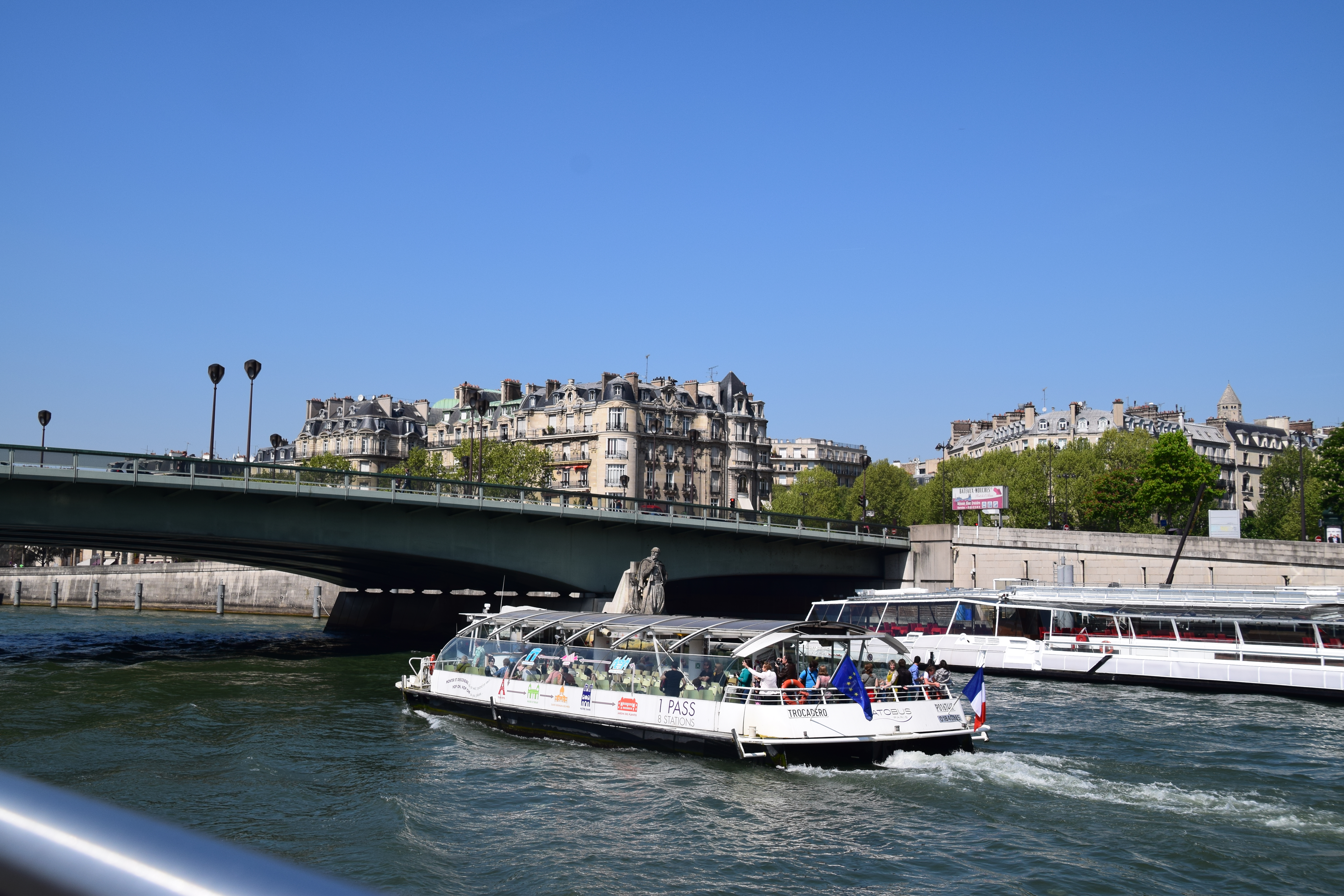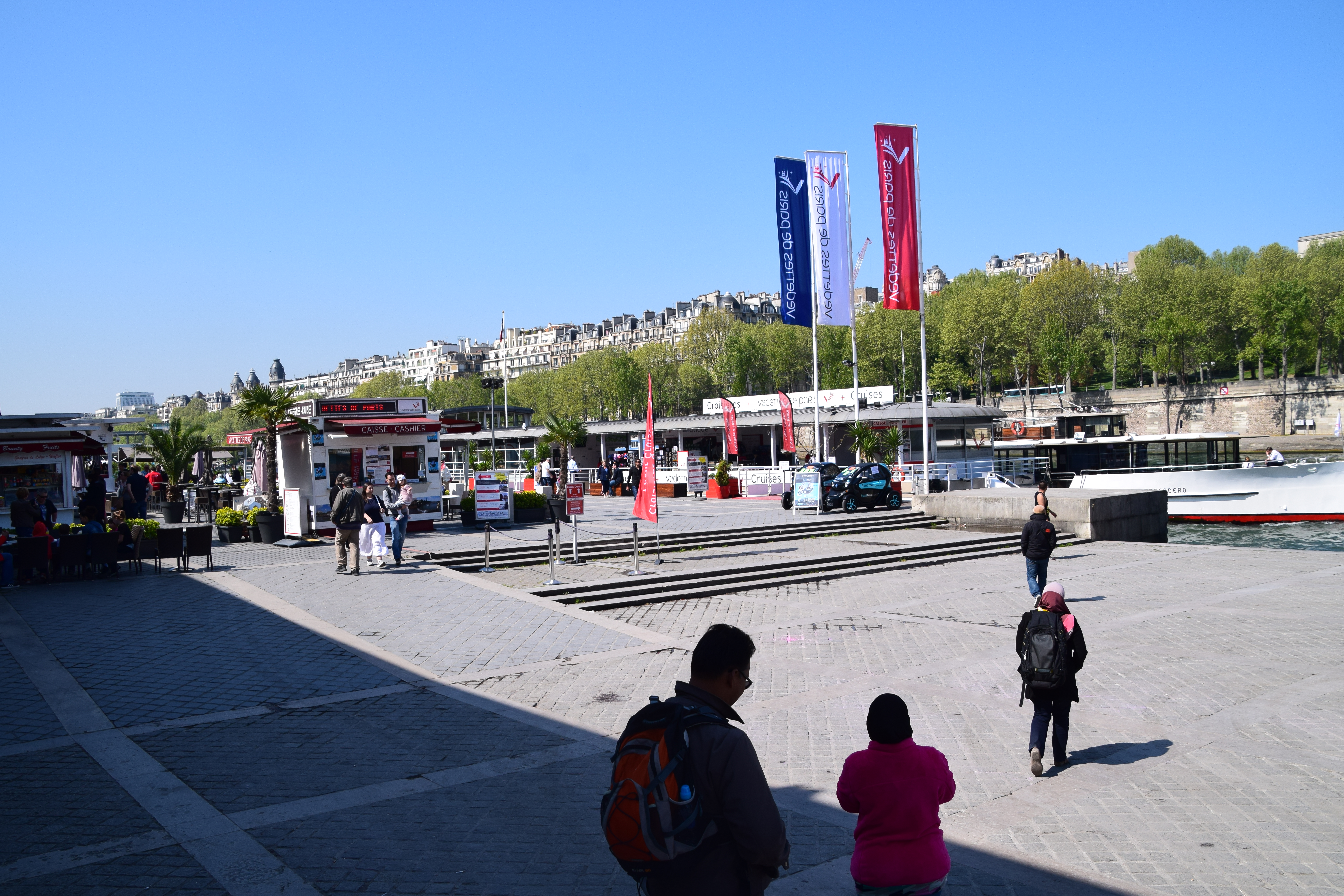 Lepas turun dr Eiffel Tower cari traffic light, tak jauh dr Eiffel Tower. Masa cross tu berhati2 dgn pick pocket ya. Lepas cross jalan terus lepas tu turun tangga. Masa turun tu dah boleh nampak tempat nak naik cruise. Kitaorg ambik 1 hour cruise tour (Vedettes de Paris), harga €14.