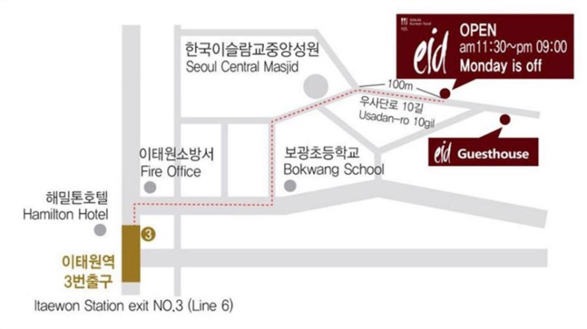 Subway: Itaewon Station (Line 6, Exit 3)