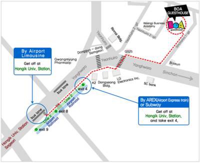 Subway: Hongik University Station (Line 2, Exit 4))