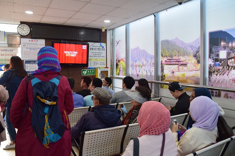 On d way turun dari Jehwangsan Park aku nampak orang beratur panjang. Rupa2nya semua tu tengah beratur untuk beli tiket monorailcar. Aku lupa plak nak snap gambar.  Alhamdulillah rezeki kitaorg beratur tak panjang.  Next spot kitaorg gerak ke Yeojwacheon Stream.