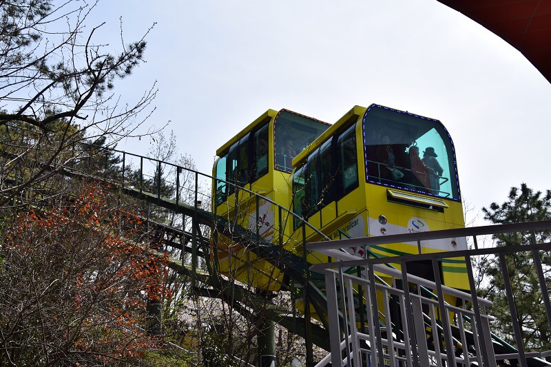 Tempat ni salah satu spot cherry blossom gak kalau pegi Jinhae. Kalau ke sini bukan setakat boleh tengok cherry blossom tapi boleh tengok pekan Jinhae dari atas.  Ada 2 cara nak ke Jehwangsan Park; naik monorailcar atau naik tangga.  Aku pernah terbaca yang ‘q’ utk naik monorailcar tu sangat panjang.  So memang akan ada yg naik tangga sebab malas nak tunggu.  Tapi kitaorg decide kalau beratur panjang then cancel naik, sebab memang tak larat ler nak naik tangga. πŸ˜…πŸ˜…πŸ˜…