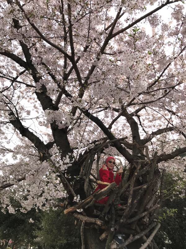 Dah abis round kat sini kitaorg pun gerak ke Jinhae Bus Terminal untuk balik ke Busan.  Sampai kat Jinhae Train Station aku minta stop kejap ambik nafas.  Dalam duk duduk berehat, hazilah ternampak ada orang naik pokok cherry blossom. Rupanya spot untuk bergambar atas pokok, siap ada tangga naik dan pangkin kat atas pokok tu.