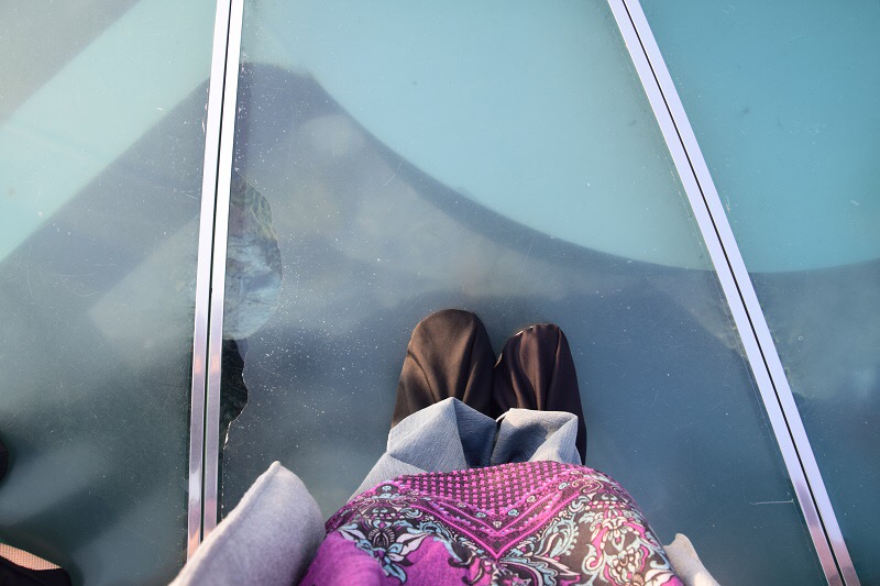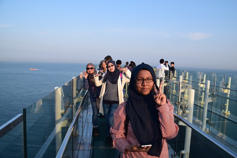 Aku gan Hazilah meneruskan perjalan ke bawah untuk tengok skywalk dari arah tepi. Aisyah, Myna dan Nabilah stay kat atas area skywalk.