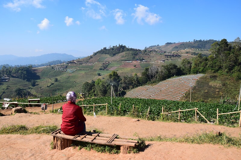 Mon Cham ni ala2 cam Cemeron Highlands. Taklah sejuka sangat tapi nyaman ler compare bandar Chiang Mai. Kat sini terkenal dengan Royal Project. Sepanjang perjalanan boleh nampak kebun kat lereng2 bukit. Ada strawberi dan sayur-sayuran.